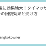 - 食事:マッサージの1〜2時間前には重い食事を避け、できれば軽い食事にとどめる
